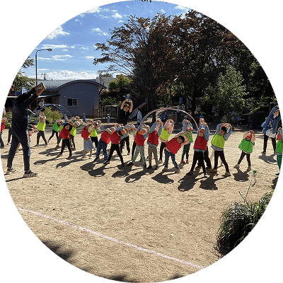 友達と遊び、社会性・道徳心を育み、自然とのふれあいを通して子どもらしいみずみずしい感性を育てます。