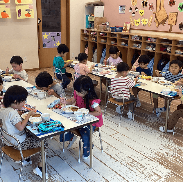 季節により、保育園で栽培したきゅうりや、果物をみんなで食べて食育活動を行っています。