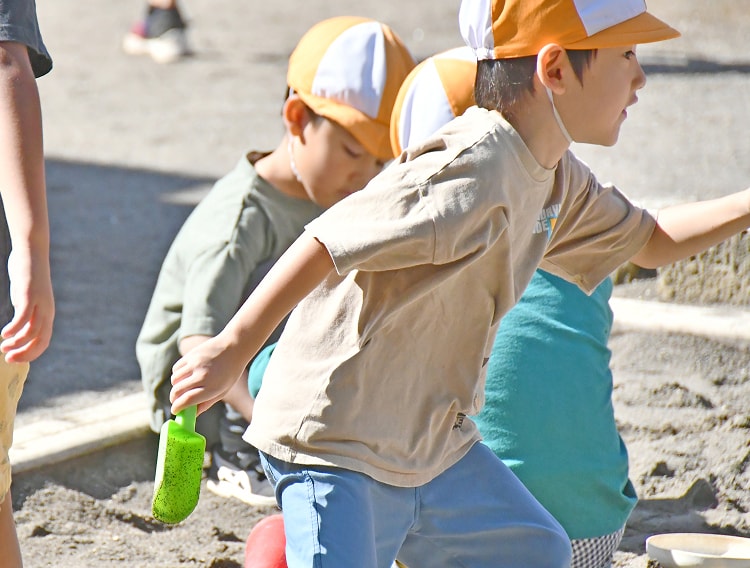 砂場・土団子遊び・草花遊び・色水遊び・木の実集め・ごっこ遊び・ルールのある遊び(鬼ごっこ・サッカーなど)